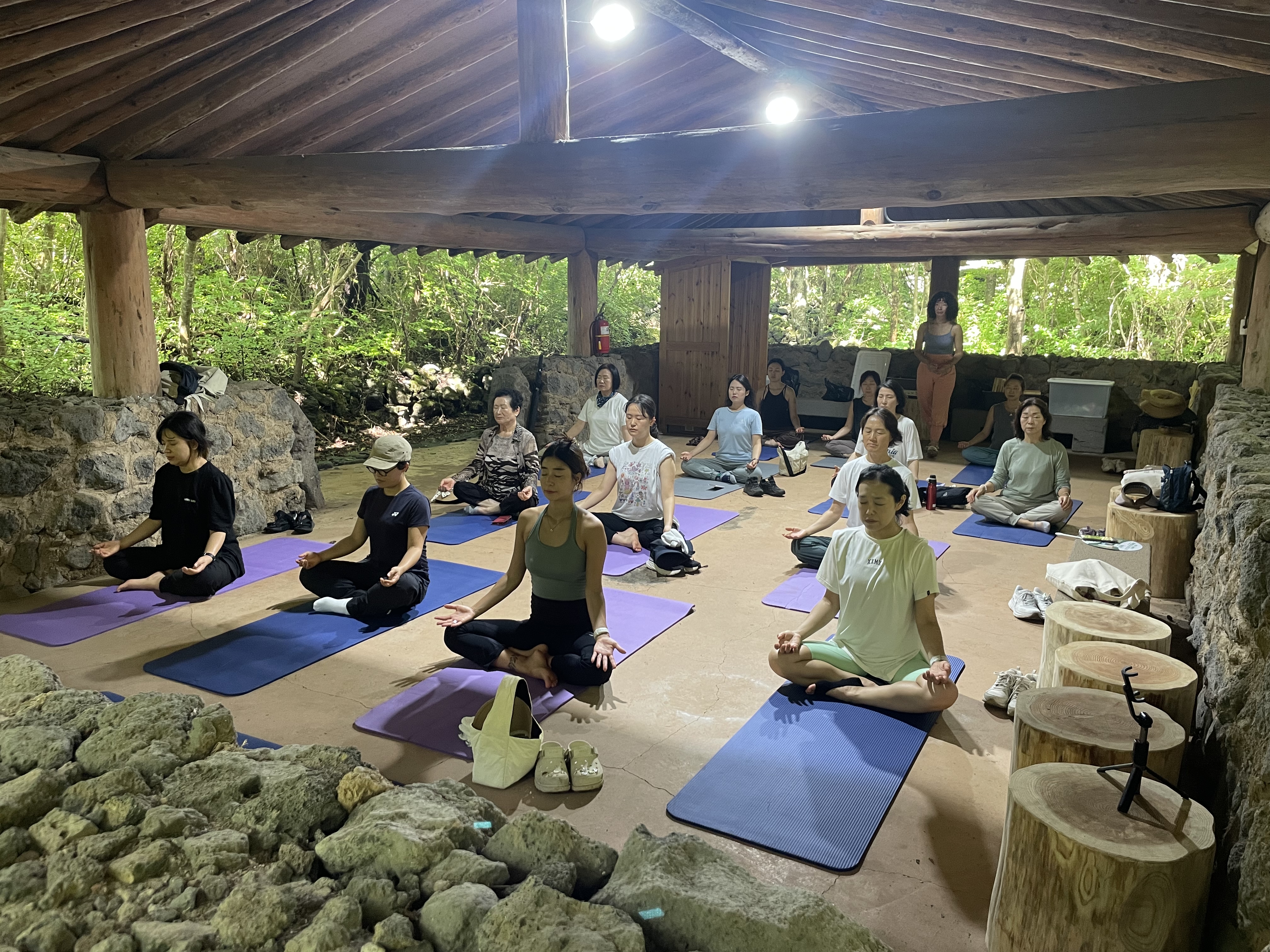 오전 프로그램인 '곶자왈 요가·명상과 차담' 참여자들은 가벼운 곶자왈 트래킹 후 요가와 명상을 통해 몸을 풀고, 차담을 나누며 심신의 에너지를 채웠습니다. 오후 프로그램인 '곶자왈 사운드워킹' 참여자들은 각자 장비를 가지고 천천히 걸으며 곶자왈의 소리풍경 속에서 힐링하는 시간을 보냈습니다.