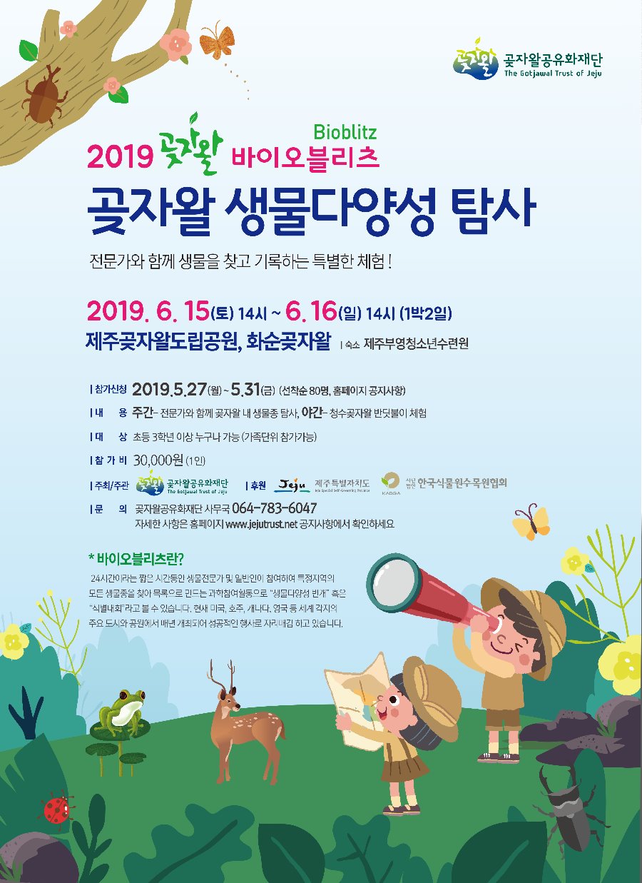 2019 곶자왈바이오블리츠, 많은 분들의 관심과 신청으로 참가자 접수가 조기에 마감되었습니다. 감사합니다.